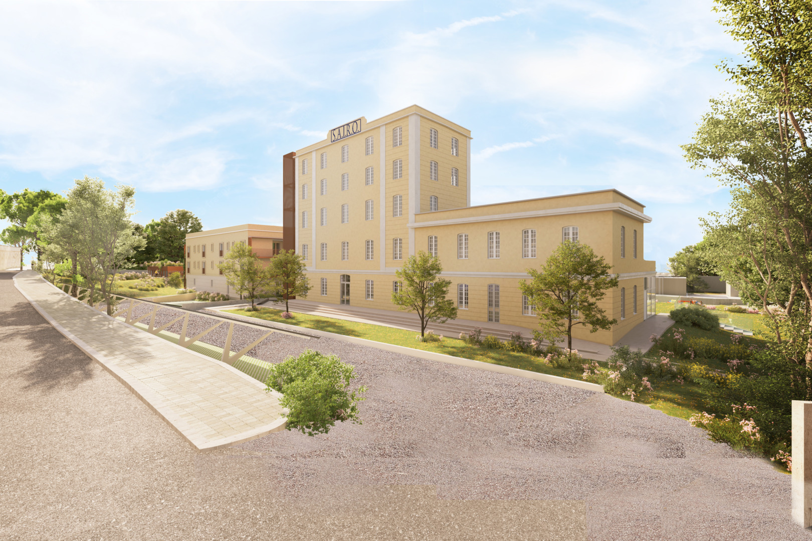 Il presente progetto prevede innanzitutto il restauro dell’edificio soggetto al vincolo, nell’ottica di una filosofia conservativa desunta dall’analisi della documentazione originale e dei documenti ricevuti dal Comune di Imperia. La porzione di edificio della SAIRO (indicato con la lettera A), verrà destinato nei piani terra e primo a servizi gestiti da associazioni del Terzo settore; nel corpo centrale dell’edificio ai piani primo, secondo, terzo e quarto sono previste residenze temporanee che il Comune intende utilizzare per favorire giovani studenti bisognosi, che in questo caso, intendano passare brevi periodi a Imperia finalizzati a corsi o attività sportive a livello agonistico e non abbiano la possibilità economica di poter alloggiare presso strutture alberghiere o case in affitto sul libero mercato.