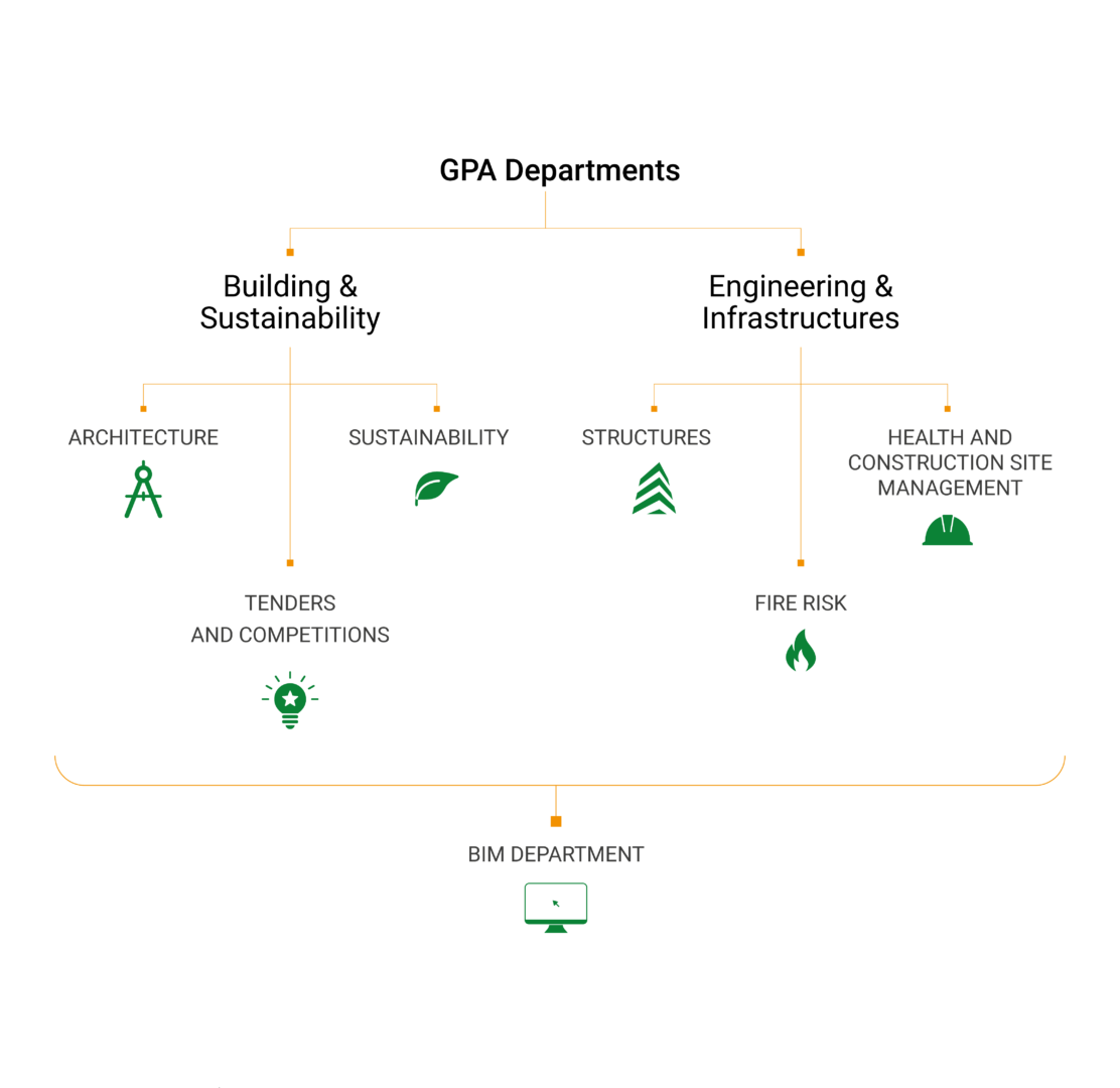 Our operational approach is always based on Integrated Design, a method in which critical issues are assessed in detail from the outset, and all the disciplines involved in defining a project – architecture, structures, systems, specialist activities – are integrated and coordinated in the framework of a single model. All this is made possible by Building Information Modelling (BIM), a methodology that enables us to narrow the gap between real and virtual, achieving high levels of real time cooperation between our professionals and simplifying workflows. In our three departments we manage all phases of design: preliminary, final, executive and detailed.